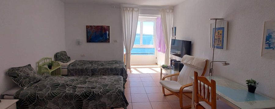 Das Appartement hat rund 46 qm. Sie betreten das Appartement und befinden sich in der Küche. Von dort geht eine Tür ins Badezimmer. Hinter der Glastür befindet sich der Wohn-Schlafraum mit 2 Betten. Dahinter, ebenfalls abtrennbar durch eine Glastür, befindet sich der Balkon, dessen Fenster sich öffnen lassen. Für eventuell notwendigen Schatten kann eine Marquise sorgen.